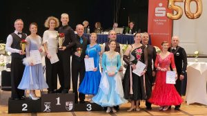 Stefan und Britt nutzten die Möglichkeit zum Doppelstart und nahmen sowohl am Turnier der MAS II C, als auch am Turnier der MAS III C teil. In beiden Turnieren konnten sie alle mittanzenden Paare hinter sich lassen und sicherten sich jeweils den ersten Platz. Herzlichen Glückwunsch zu diesem tollen Doppelerfolg!